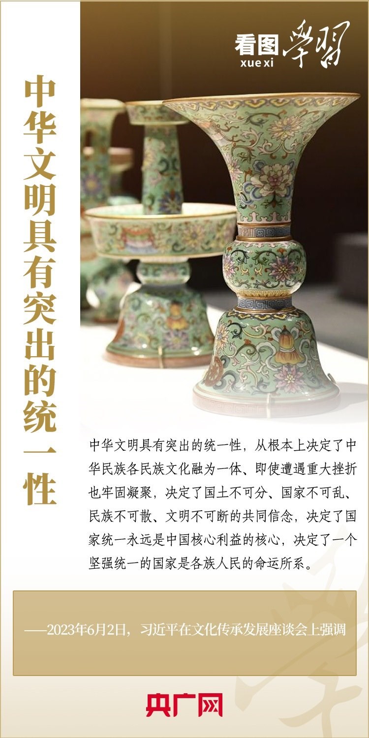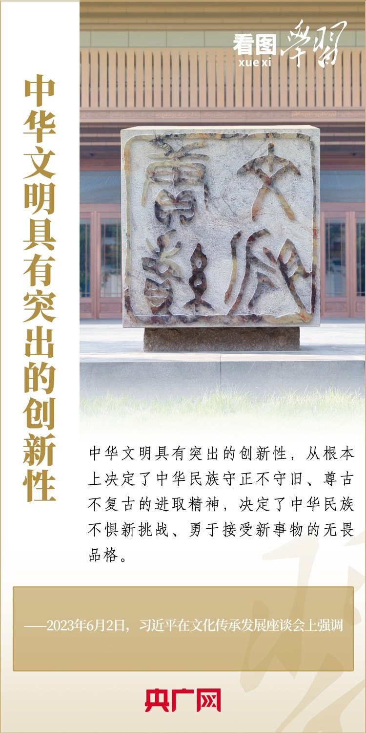 6月2日,習近平總書記在北京出席文化傳承發(fā)展座談會并發(fā)表重要講話,強調(diào)中國文化源遠流長,中華文明博大精深。只有全面深入了解中華文明的歷史,才能更有效地推動中華優(yōu)秀傳統(tǒng)文化創(chuàng)造性轉(zhuǎn)化、創(chuàng)新性發(fā)展,更有力地推進中國特色社會主義文化建設,建設中華民族現(xiàn)代文明。會上,總書記全面、深刻地總結(jié)了中華文明的五個突出特性。一起來學習!