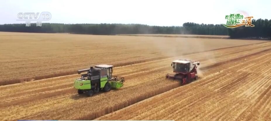 總臺央視記者 邵海成:我現(xiàn)在是在河南省西平縣,我身后是1萬多畝的小麥良種基地。當(dāng)?shù)卣{(diào)集10臺大馬力收割機(jī)參與小麥種子的搶收,每小時(shí)收割小麥400多畝。