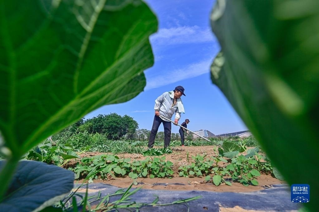 6月5日,在云南省麗江市玉龍納西族自治縣黃山街道長水社區(qū),菜農在田里勞作。