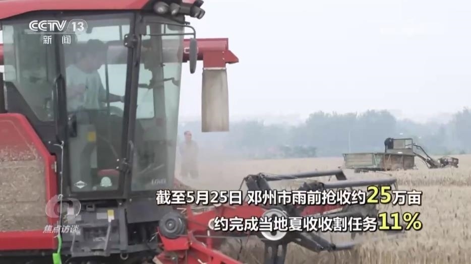 央視網(wǎng)消息(焦點訪談):今天是芒種節(jié)氣,芒種的意思是有芒的麥子快收,有芒的稻子可種。這是一年中農(nóng)事最忙的時節(jié)。夏熟的要收,秋收的要播,春種的要管,首先就是麥收。河南被稱為“中原糧倉”,是我國小麥播種面積最大的省份,小麥年產(chǎn)量占到全國的四分之一,而位于河南南部的鄧州,則是全國知名的產(chǎn)糧大縣,小麥種植面積210多萬畝。但從5月25日開始,當?shù)貐s連續(xù)幾天都是下雨天氣。怎么減輕雨水對收成的影響?