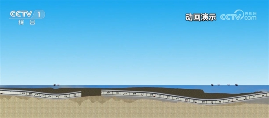 總臺(tái)央視記者 李偉代:我身后就是深中通道西人工島,它是深中通道橋隧轉(zhuǎn)換的關(guān)鍵構(gòu)造;從這里開(kāi)始,深中通道將從橋梁部分轉(zhuǎn)入全長(zhǎng)6845米海底隧道部分,未來(lái)汽車將從這里駛?cè)牒5姿淼?,最深將在海?0米的沉管中行駛。