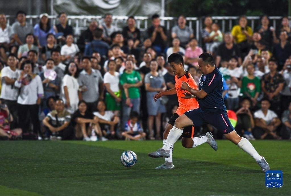 6月9日,鳳凰村足球隊與新中村足球隊在“村超”比賽中。