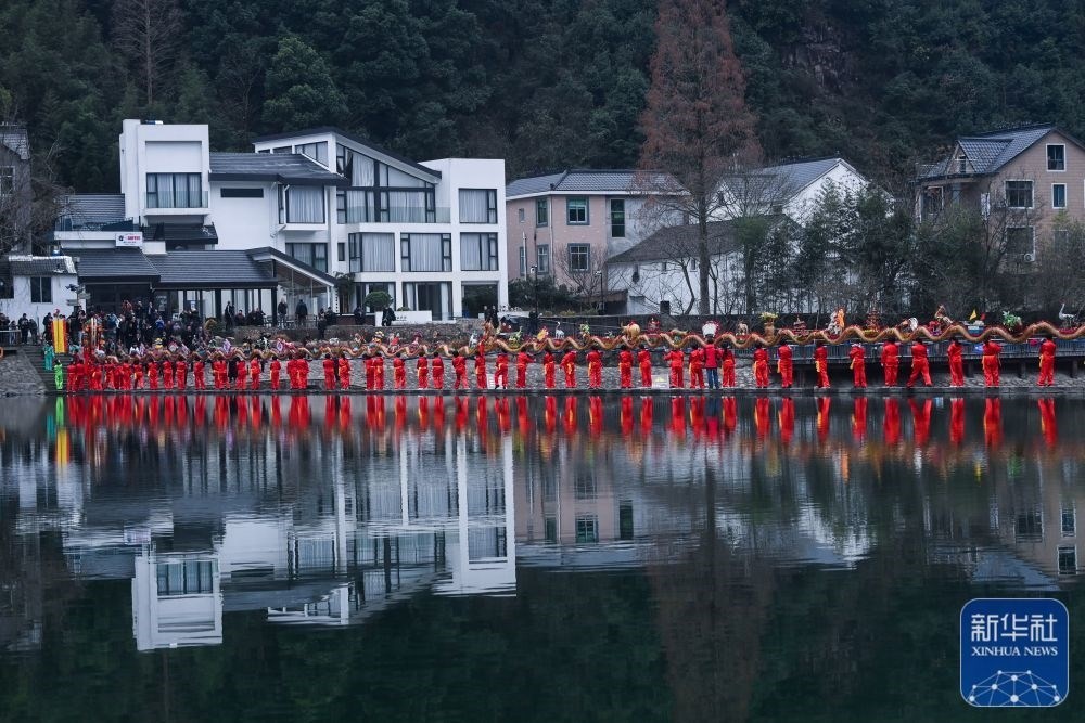 浙江杭州市富陽區(qū)湖源鄉(xiāng)窈口村女子板龍隊(duì)在進(jìn)行板凳龍舞龍表演(2月1日攝)。湖源鄉(xiāng)是個群山環(huán)抱、青山綠水、生態(tài)秀美的山區(qū)鄉(xiāng)鎮(zhèn),近年來,湖源緊抓機(jī)遇,圍繞“樂水湖源、龍鱗+”發(fā)展目標(biāo),立足山水特色,錨定發(fā)展綠色經(jīng)濟(jì),打造獨(dú)具特色的鄉(xiāng)村旅游品牌。新華社記者 徐昱 攝