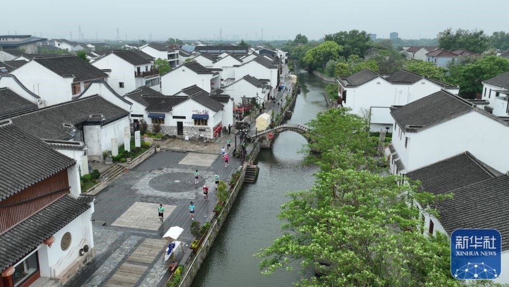 在浙江湖州市八里店鎮(zhèn)潞村,人們在參加一場鄉(xiāng)村馬拉松比賽(4月29日攝)。新華社記者 翁忻旸 攝