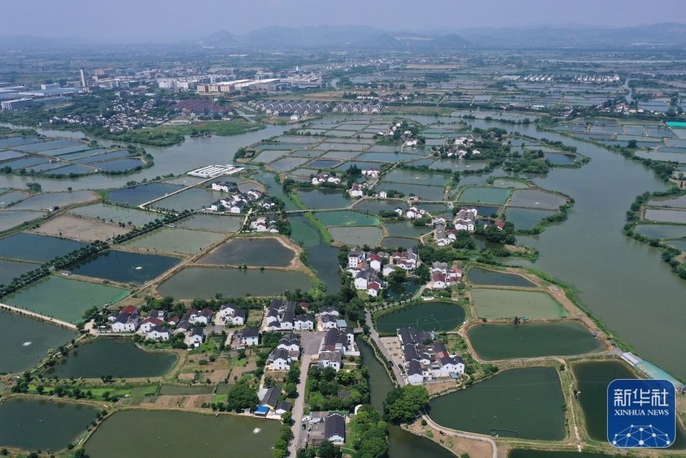 6月9日拍攝的浙江湖州市南潯區(qū)和孚鎮(zhèn)新荻村(無人機(jī)照片)。近年來,新荻村大力發(fā)展水文化、漁文化、菱文化,結(jié)合自身特色發(fā)展休閑鄉(xiāng)村旅游,打造美麗鄉(xiāng)村升級版。新華社記者 黃宗治 攝