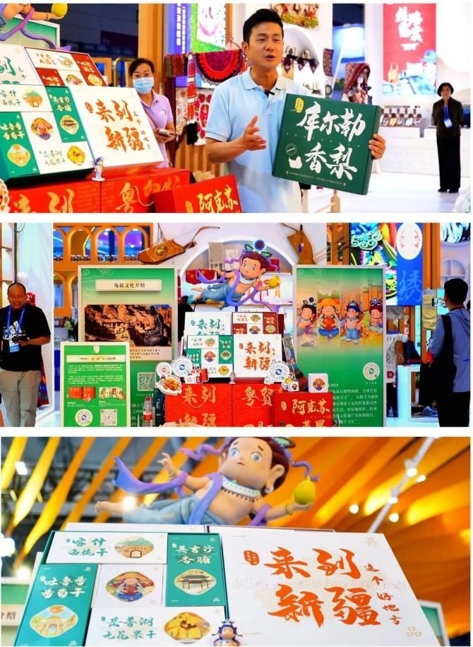 在文博會現(xiàn)場,“龜茲寶寶”立體裝置及其賦能的農文創(chuàng)品牌“粵貿行一縣一品”系列產品吸引了眾多觀眾前來打卡拍照,自發(fā)傳播。