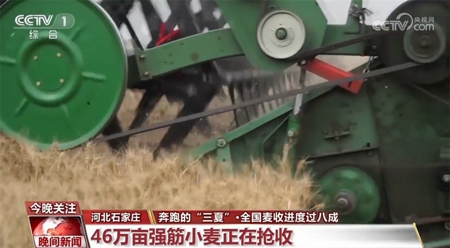 河北省石家莊市藁城區(qū)的46萬(wàn)畝強(qiáng)筋小麥正在搶收,今年這里的小麥進(jìn)一步推行規(guī)?;N植、標(biāo)準(zhǔn)化生產(chǎn)、專(zhuān)業(yè)化收儲(chǔ)。