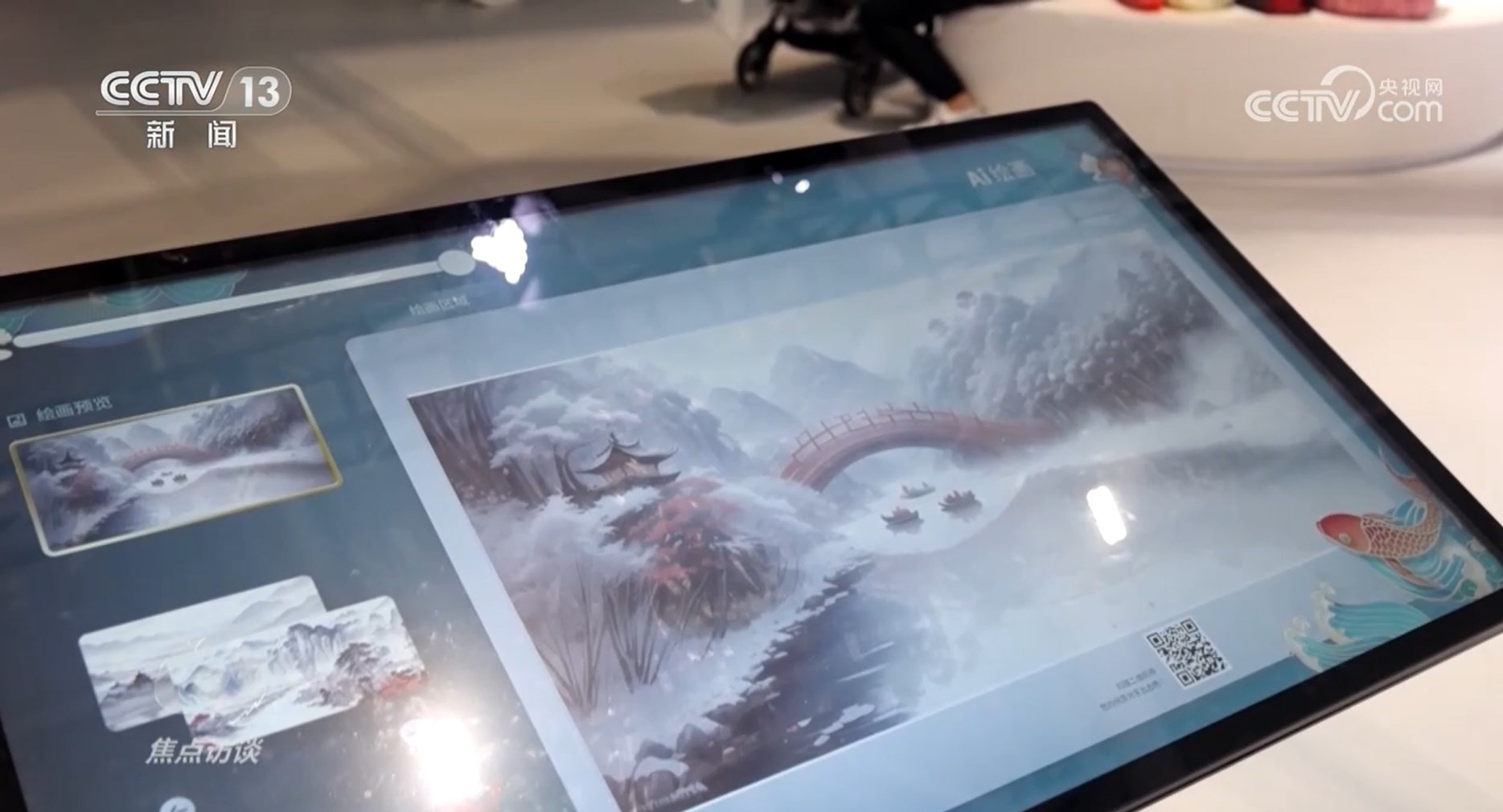 體驗一把AI繪畫是很多觀展小朋友的愿望,從一名繪畫小白變成國畫大師需要多久?文博會給我們的答案是5秒。深圳某科技公司剛剛研發(fā)出的AI作畫機,根據(jù)用戶畫出的圖案不斷進(jìn)行造型演變,展開豐富聯(lián)想最終創(chuàng)作合成出國風(fēng)山水畫作。