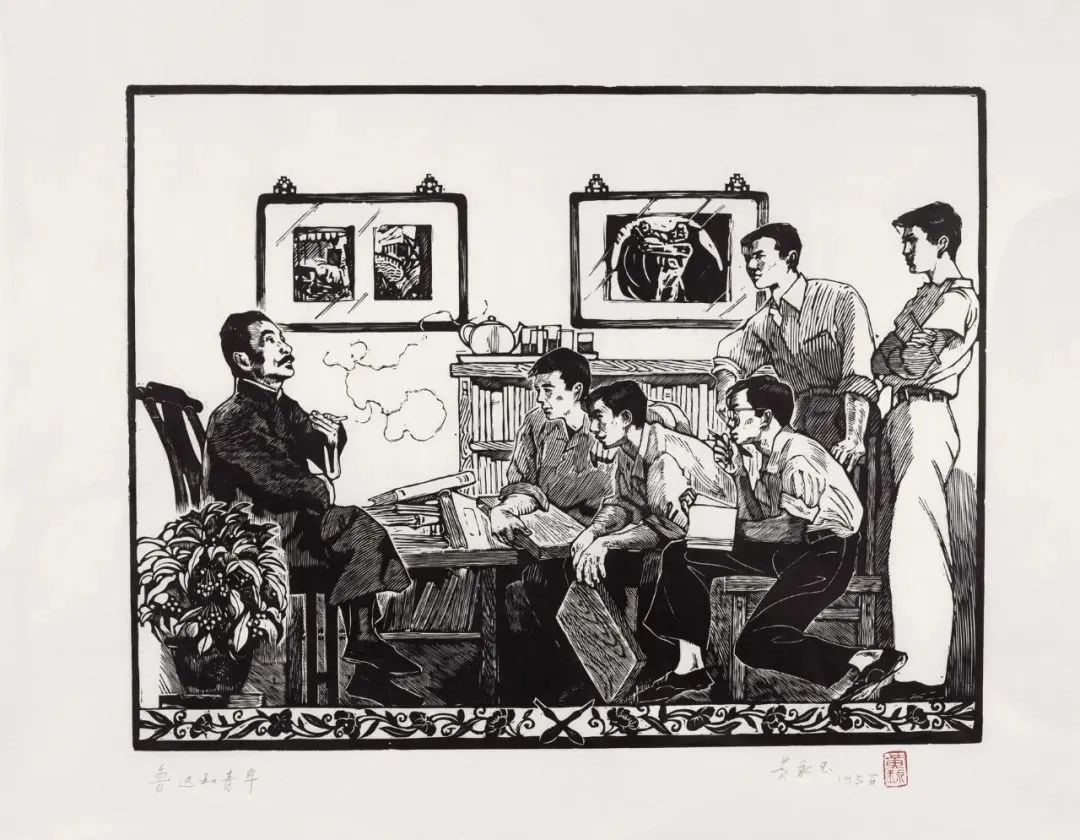 魯迅先生和青年木刻工作者 35×45cm 1954年