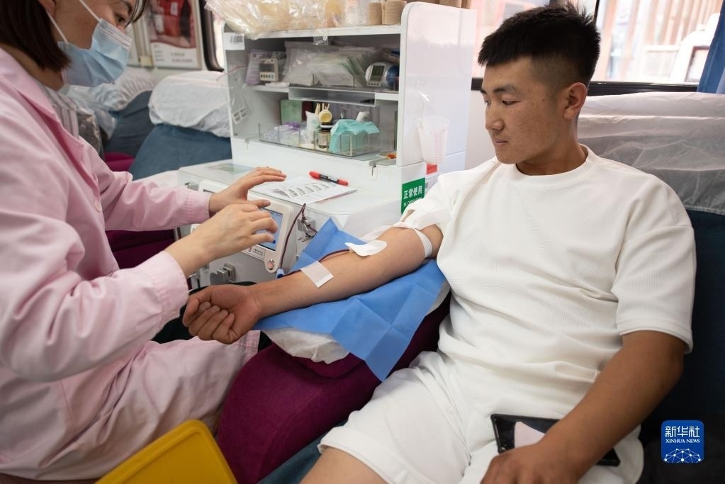 6月14日,市民在云南省麗江市祥和商業(yè)廣場(chǎng)的流動(dòng)獻(xiàn)血車(chē)內(nèi)獻(xiàn)血。 新華社發(fā)(趙慶祖攝)