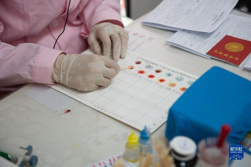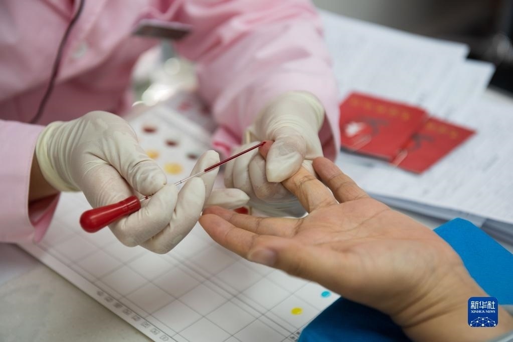 6月14日,市民在安徽省合肥市肥東縣血站無(wú)償獻(xiàn)血室進(jìn)行獻(xiàn)血前檢驗(yàn)。   新華社發(fā)(阮雪楓攝)