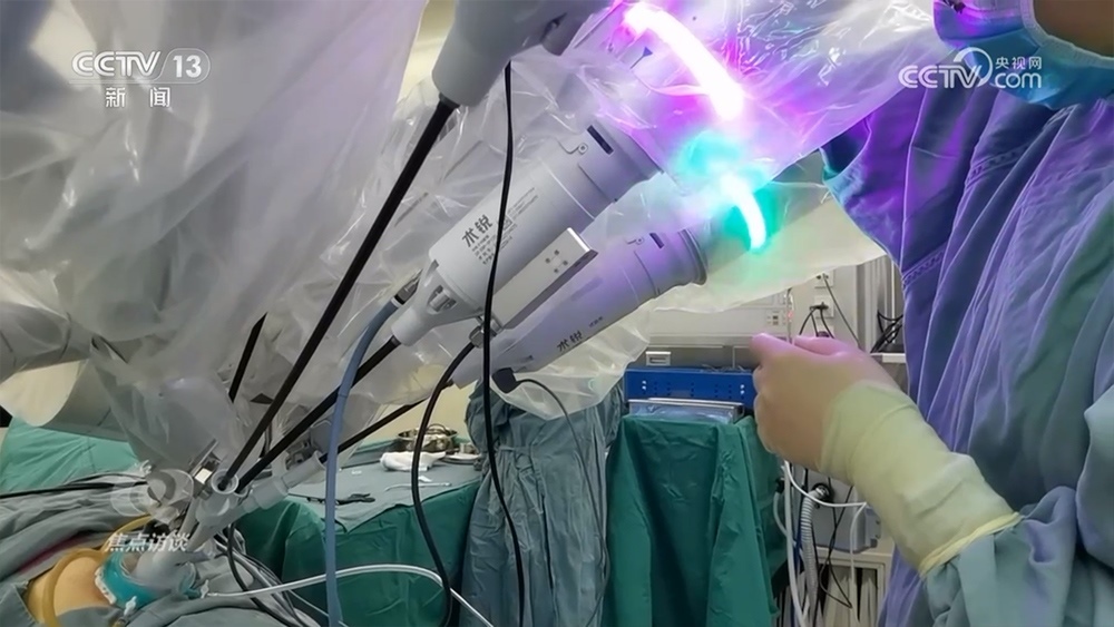 孫醫(yī)生使用的單孔腔鏡手術(shù)機器人由北京術(shù)銳研發(fā)。在68個高精度伺服電機的驅(qū)動下,單孔腔鏡手術(shù)機器人可以540度自由旋轉(zhuǎn),每秒可實現(xiàn)千次亞毫米級精準(zhǔn)操控,完成人手無法完成的工作。過去做類似手術(shù)需要在患者身上打四個孔,現(xiàn)在僅需一個。