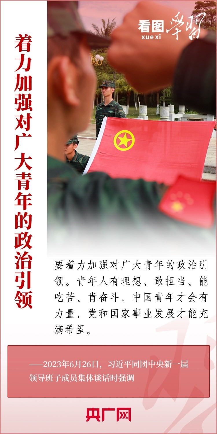 6月26日,習近平總書記同團中央新一屆領(lǐng)導班子成員集體談話并發(fā)表重要講話,對共青團中央切實肩負起新時代新征程黨賦予的使命任務,更好把青年一代團結(jié)凝聚在黨的周圍提出殷切希望。一起來學習!