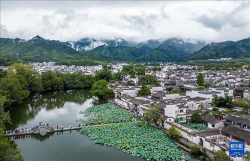 近日,安徽省黃山市黟縣出現(xiàn)陰雨天氣,該縣境內(nèi)的徽派建筑和山水、水稻田等在煙雨朦朧中相映成趣,呈現(xiàn)出中國傳統(tǒng)山水畫般的美感。