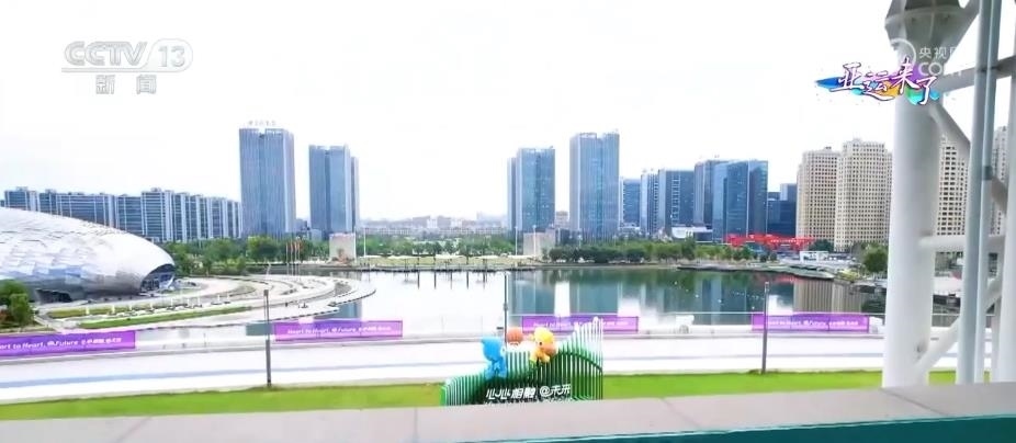 一邊看比賽,一邊賞風(fēng)景,將是觀眾在這座亞運(yùn)場(chǎng)館的獨(dú)特體驗(yàn)。往北遠(yuǎn)處高樓林立,近處就是鳳棲湖,湖邊矗立的橢圓形建筑是德清國(guó)際會(huì)議中心,也是(首屆)聯(lián)合國(guó)地理信息大會(huì)的會(huì)址。德清地理信息小鎮(zhèn)是中國(guó)首個(gè)地理信息產(chǎn)業(yè)化小鎮(zhèn),在這里能夠感受小鎮(zhèn)的數(shù)字活力。往南則是綿延起伏的山巒,可以欣賞到小鎮(zhèn)的自然風(fēng)光。因此,這里不僅將帶來三人制籃球的精彩賽事,也將成為當(dāng)?shù)叵蚴澜缯故境鞘酗L(fēng)貌的一個(gè)窗口。