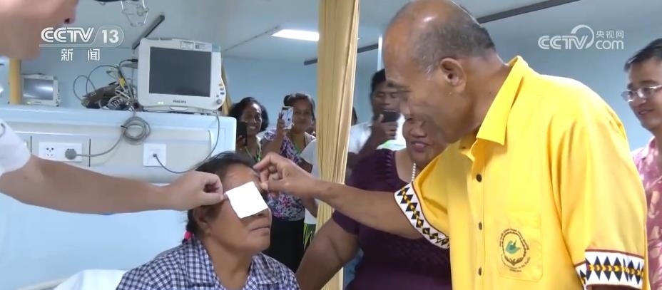 任務(wù)過程中,共有37名患者完成眼疾手術(shù)重見光明。這是一名受白內(nèi)障困擾接近10年的基里巴斯居民,聽到“和平方舟”能開展白內(nèi)障手術(shù)的消息,他在家人的陪伴下第一時間來到“和平方舟”眼科診室。中國醫(yī)生為其制定了全流程、精準(zhǔn)化的診療方案,讓她重見光明。