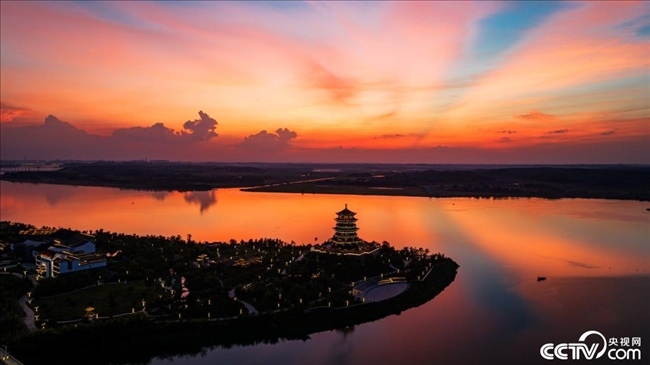 江西吉安,夕陽(yáng)西下,漫天霞光映紅江面。