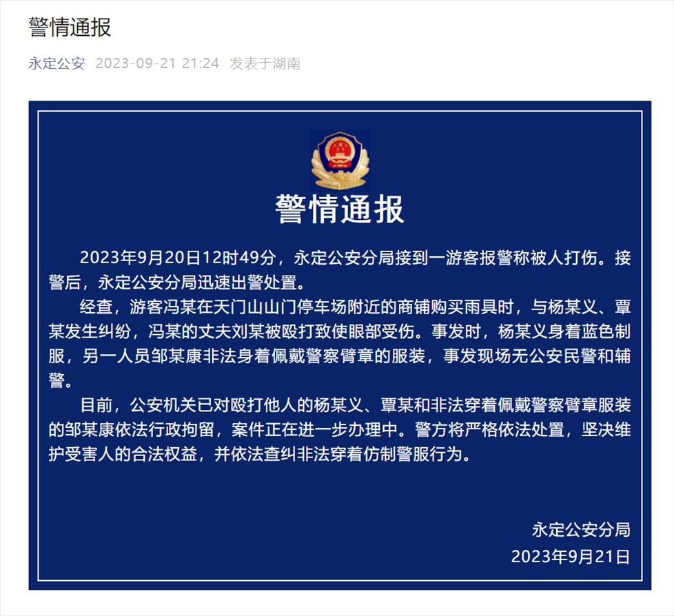 ·游客在張家界被毆打后續(xù):家屬稱文旅局長探望道歉,兩打人者有前科。