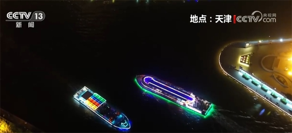 華燈初上,海河兩岸流光溢彩,在天津,夜游海河稱得上是賞月的最佳選擇。北安橋、解放橋等人文景觀與海河游船匯聚成海河上一道流動(dòng)的風(fēng)景,很多外地游客來天津后都會(huì)選擇先坐船看風(fēng)景,航程過半,一曲《花好月圓》響徹海河,把現(xiàn)場氛圍推至高潮。