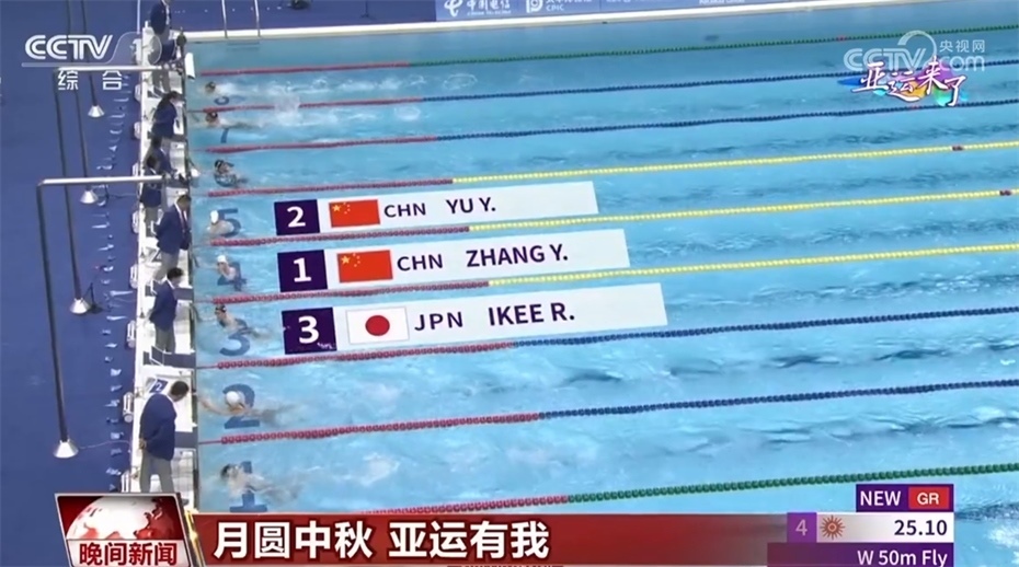 游泳賽事來到收官日,在9月29日晚進(jìn)行的各項(xiàng)決賽中,率先出場(chǎng)的張雨霏用打破亞運(yùn)會(huì)紀(jì)錄的成績(jī)拿到了50米蝶泳的金牌,這也是她在本屆亞運(yùn)會(huì)拿到的第6枚金牌。