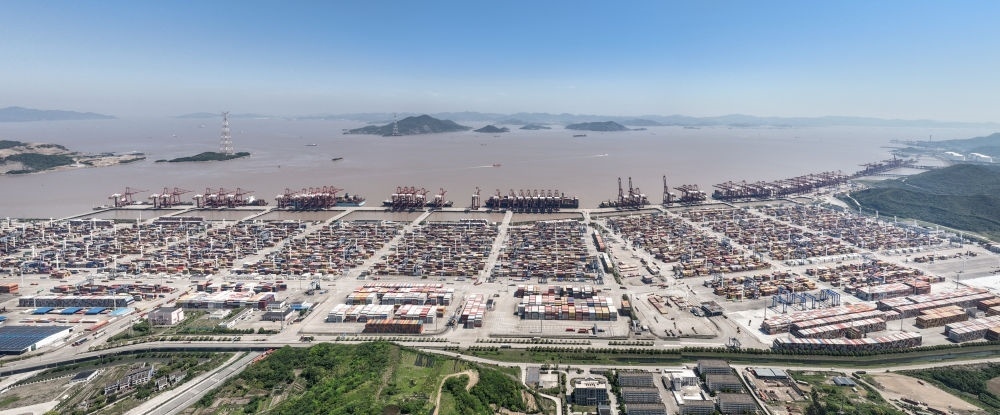 鳥瞰寧波舟山港穿山港區(qū)(無人機照片,5月9日攝)。新華社記者 翁忻旸 攝