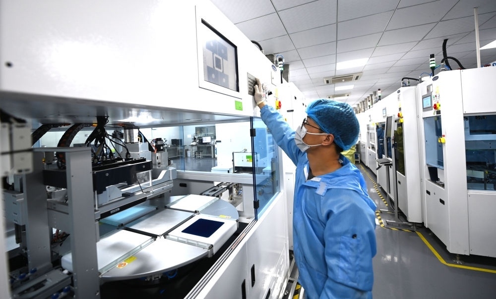在杭州市富陽區(qū)春江街道富春灣新城的杭州正銀電子材料有限公司的研發(fā)實驗室內(nèi),自動化設備在進行光伏板的絲網(wǎng)印刷(3月22日攝)。新華社記者 徐昱 攝
