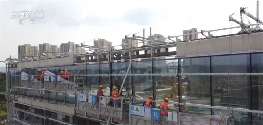 高溫下的堅(jiān)守 與太陽“捉迷藏”的幕墻安裝工
