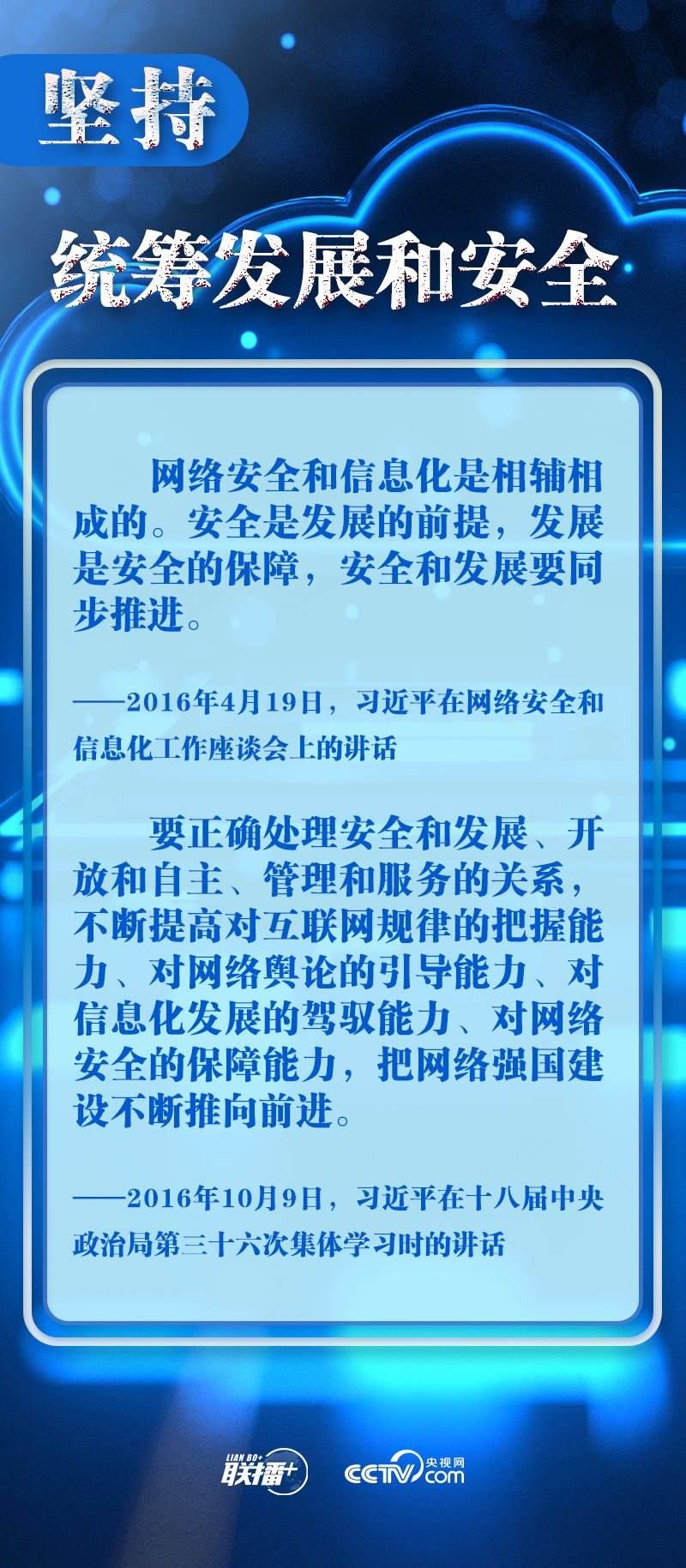 新時代新征程,網(wǎng)信事業(yè)的重要地位作用日益凸顯。央視網(wǎng)《聯(lián)播+》欄目圍繞總書記提出的十個“堅持”,與您一起學(xué)習(xí)總書記關(guān)于網(wǎng)絡(luò)安全和信息化工作的重要思想。