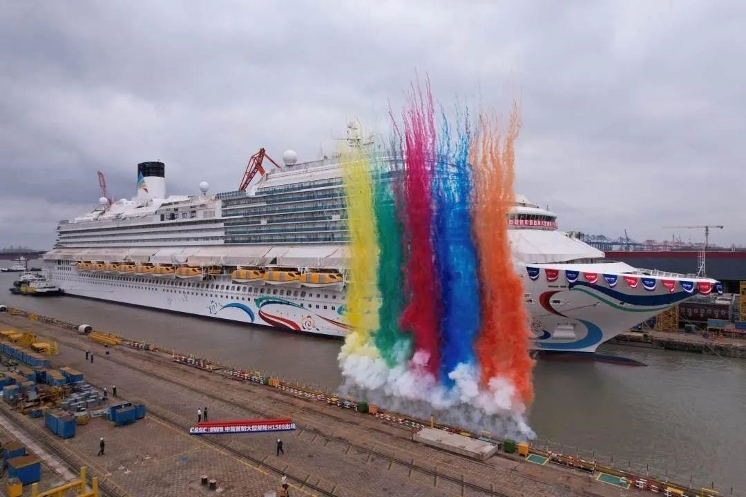 △2023年6月6日,首艘國(guó)產(chǎn)大型郵輪愛(ài)達(dá) 魔都號(hào)在上海外高橋造船廠完成塢內(nèi)系列試驗(yàn)后正式出塢。