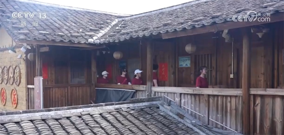 總臺(tái)央視記者 陳燁煒:我身后的這棟樓已經(jīng)有100多年的歷史,鵝卵石鋪成的小院、青磚砌成的外墻以及木質(zhì)結(jié)構(gòu)的房屋,處處在向我們傳遞著古老的文化氣息,多年前這里曾經(jīng)是當(dāng)?shù)鼐用窬幼〉姆课荩鼛啄杲?jīng)過改造后,已經(jīng)成了很多外地游客慕名前來的網(wǎng)紅打卡地。