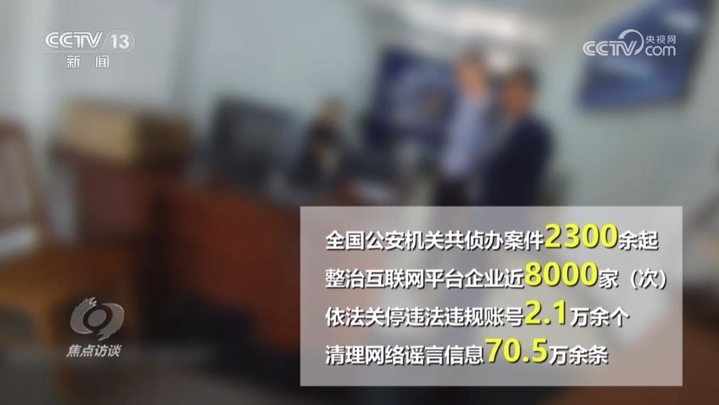今年4月以來,公安部網(wǎng)安局部署開展為期100天的網(wǎng)絡(luò)謠言打擊整治專項行動,全國公安機關(guān)共偵辦案件2300余起,整治互聯(lián)網(wǎng)平臺企業(yè)近8000家(次),依法關(guān)停違法違規(guī)賬號2.1萬余個,清理網(wǎng)絡(luò)謠言信息70.5萬余條,對網(wǎng)絡(luò)謠言違法犯罪形成強大震懾。
