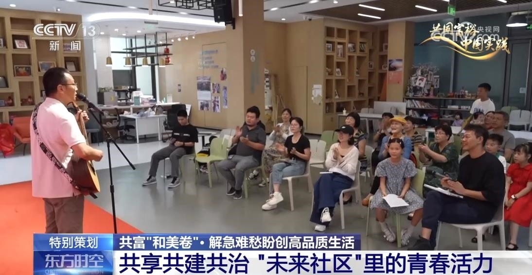 在楊柳郡社區(qū),除了兒童的成長備受關(guān)注,年輕人的文化生活和社交需求也能得到滿足。社區(qū)創(chuàng)辦了21個(gè)興趣社群,邀請居民擔(dān)當(dāng)社群主理人,定期開展活動(dòng)。高東新是音樂社群的主理人,他已經(jīng)組織了18場音樂會(huì),還在公共空間打造了別具一格的“社區(qū)音樂廳”。