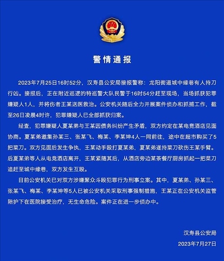 ·湖南漢壽警方通報“多人當(dāng)街持刀互砍”:債務(wù)問題引發(fā),已刑事立案。
