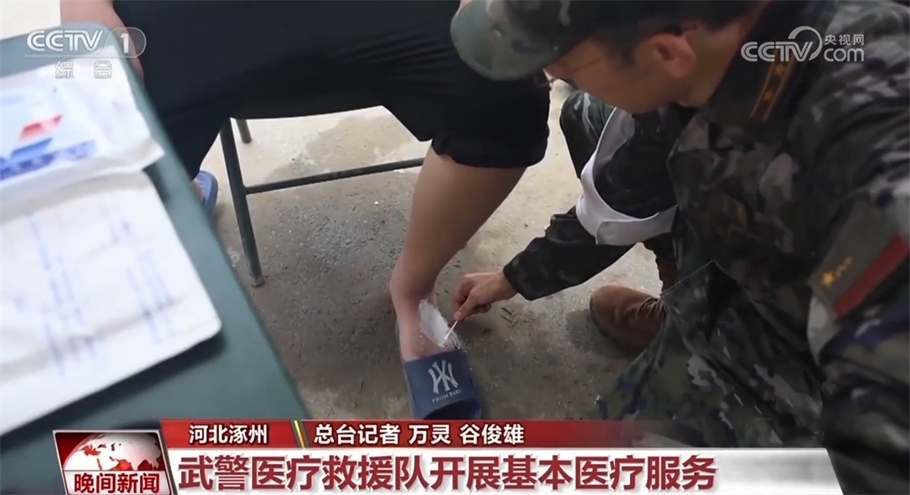 8月3日開始,武警河北總隊醫(yī)院緊急抽調(diào)了22名官兵組成救援醫(yī)療隊,前往涿州受災(zāi)點,在當?shù)卮罱ㄡt(yī)療帳篷,接診病患、分發(fā)藥品,并開展衛(wèi)生防疫宣傳等工作。