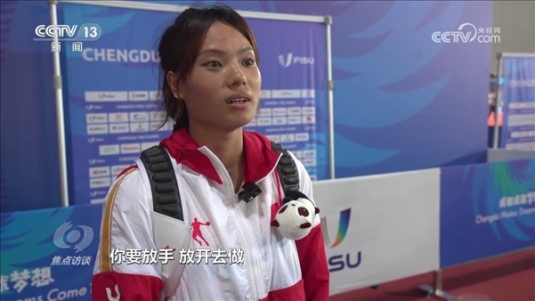成都大運(yùn)會中國代表團(tuán)運(yùn)動員江南:“那時(shí)候訓(xùn)練壓力比較大,很累,身心疲憊,心理上、身體上的那種打擊,之后那一年就停訓(xùn)了,退隊(duì)了?!?/p>