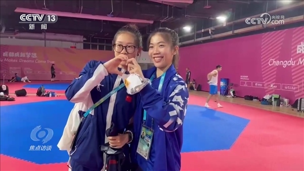 成都大運(yùn)會,是青春的盛會,也是一次友誼的盛會。來自世界各國的大學(xué)生們,一起競技,一起生活。他們交流著彼此的運(yùn)動技巧,同時(shí)也交流著彼此的文化和觀點(diǎn)。正在中國地質(zhì)大學(xué)就讀的跆拳道運(yùn)動員羅妙溢,在成都大運(yùn)會中遇到了自己的偶像——東京奧運(yùn)會跆拳道女子49公斤級冠軍、泰國選手班妮巴。在自己不比賽的時(shí)候,羅妙溢會專門來給班妮巴加油。