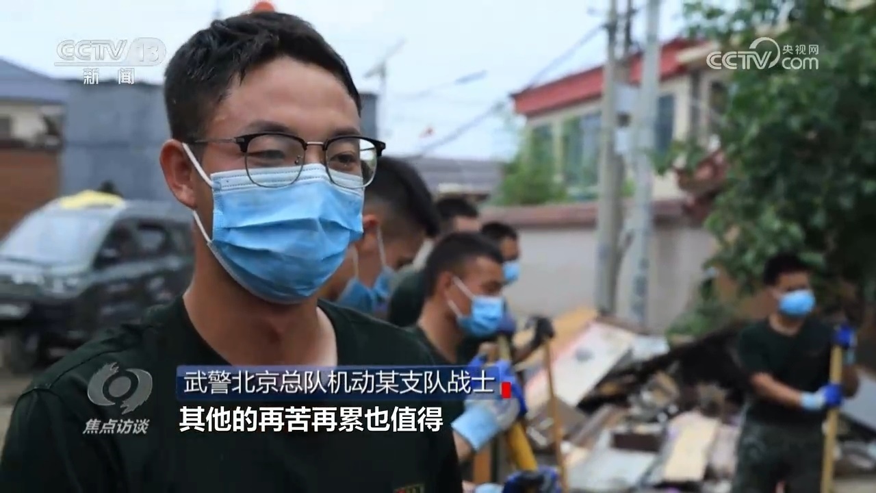 從7月31日接到命令以來,武警北京總隊機動某支隊就派出1450人奮戰(zhàn)在一線,前期參與救援,現(xiàn)在是災(zāi)后清淤,每天都要工作十小時以上。