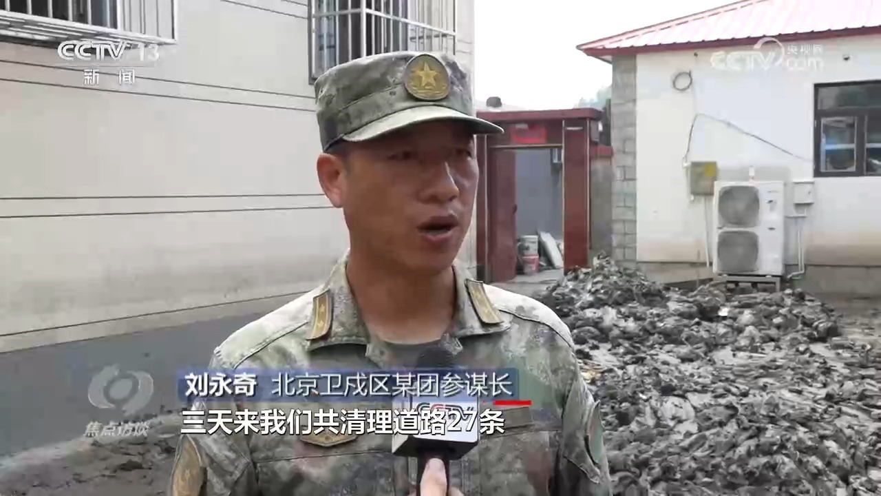 北京衛(wèi)戍區(qū)某團(tuán)參謀長劉永奇:“三天來,我們共清理道路27條,面積28000余平方米,淤泥700余立方米,廢舊垃圾1300余立方米,全面疏通了各條道路?!?/p>