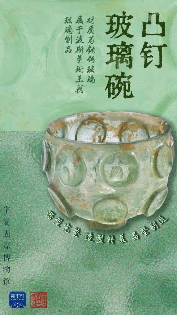 不同于我國古代的鉛鋇玻璃,這件出土于寧夏固原的凸釘玻璃碗的材質(zhì)是鈉鈣玻璃,是經(jīng)絲綢之路遠(yuǎn)道而來的“進(jìn)口貨”——波斯薩珊王朝玻璃制品。據(jù)張強(qiáng)介紹,這只玻璃碗體現(xiàn)了薩珊玻璃器形和紋飾上的獨(dú)特風(fēng)格以及精湛的磨琢工藝,是我國出土的薩珊玻璃器的代表,說明當(dāng)時(shí)西方玻璃器經(jīng)絲綢之路輸入中國,也反映出固原作為絲綢之路東段北道的必經(jīng)之地,在當(dāng)時(shí)國際商業(yè)貿(mào)易和文化傳播中的重要地位。
