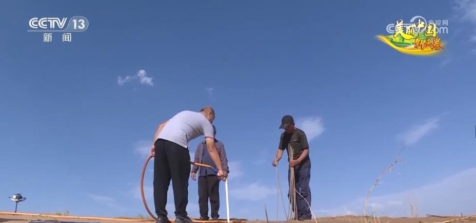 但個性倔強的田旺,骨子里有一股不服輸?shù)膭蓬^。他暗暗下定決心,一定要留下來,還要干出一番名堂。他虛心向老一輩治沙人學(xué)習(xí),鍛煉自己適應(yīng)沙漠的生活和工作。很快,田旺不僅適應(yīng)了沙漠環(huán)境,而且還不斷努力鉆研新的治沙技術(shù)。在沙丘上,田旺給我們展示了現(xiàn)在效率和成活率最高的氣流植樹法。