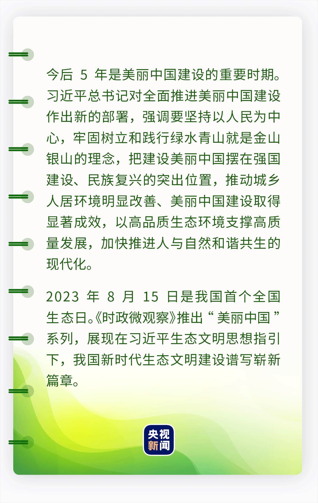 在習近平生態(tài)文明思想指引下,我們守牢美麗中國建設安全底線,健全美麗中國建設保障體系,在神州大地上全面推進美麗中國建設,不斷繪出人與自然和諧共生的美好畫卷。