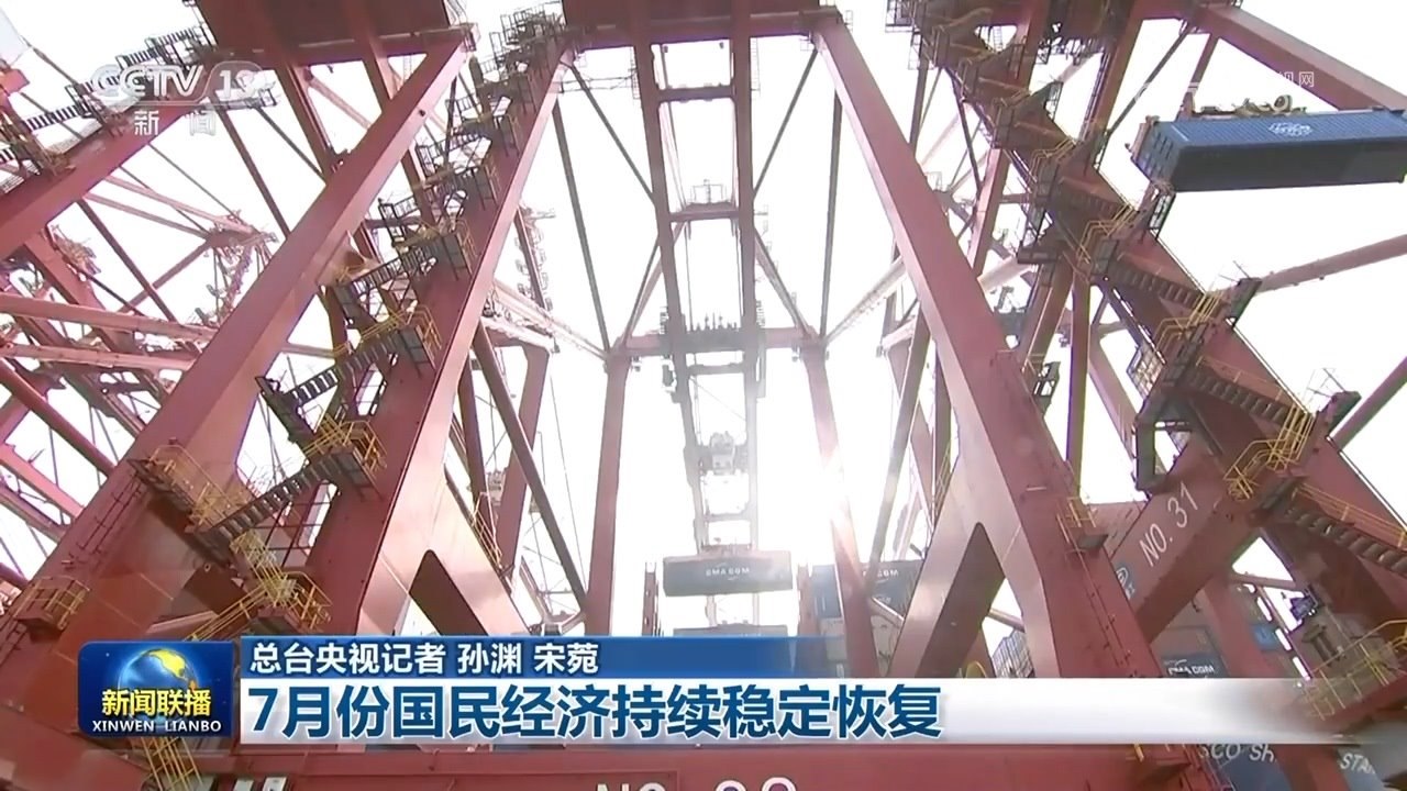 央視網(wǎng)消息(新聞聯(lián)播):國務(wù)院新聞辦今天(8月15日)舉行新聞發(fā)布會,國家統(tǒng)計局相關(guān)負責(zé)人介紹當(dāng)前經(jīng)濟形勢,多項數(shù)據(jù)顯示,7月份國民經(jīng)濟持續(xù)穩(wěn)定恢復(fù)。