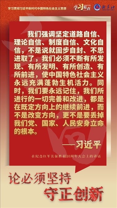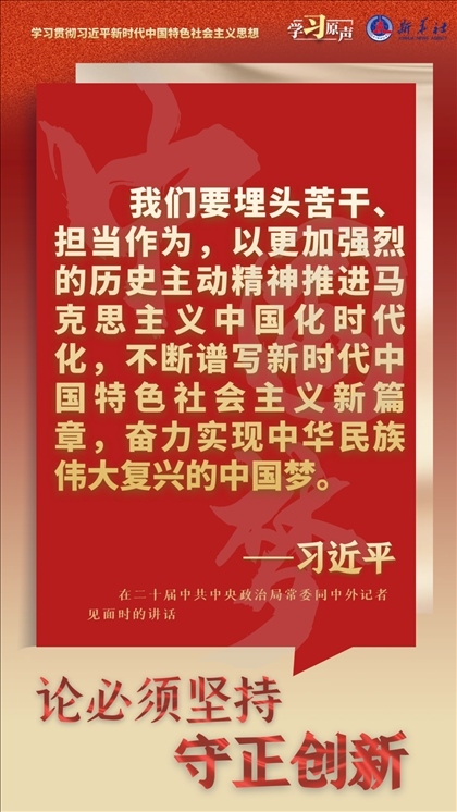 我們從事的是前無古人的偉大事業(yè),守正才能不迷失方向、不犯顛覆性錯誤,創(chuàng)新才能把握時代、引領時代。我們要以科學的態(tài)度對待科學、以真理的精神追求真理,堅持馬克思主義基本原理不動搖,堅持黨的全面領導不動搖,堅持中國特色社會主義不動搖,緊跟時代步伐,順應實踐發(fā)展,以滿腔熱忱對待一切新生事物,不斷拓展認識的廣度和深度,敢于說前人沒有說過的新話,敢于干前人沒有干過的事情,以新的理論指導新的實踐。