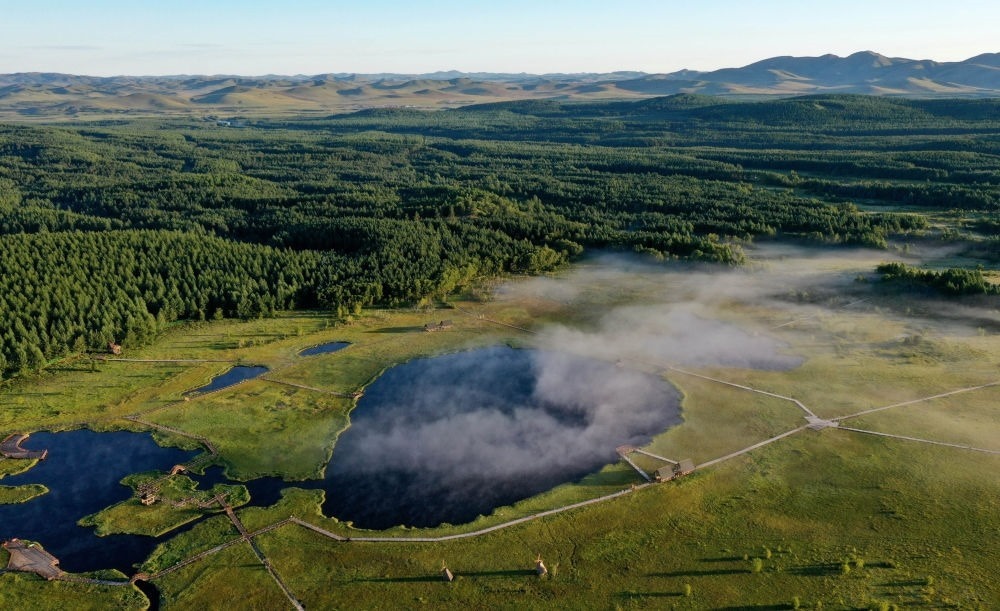 這是2020年8月24日拍攝的黃石國(guó)家礦山公園(無人機(jī)照片)。新華社記者 肖藝九 攝