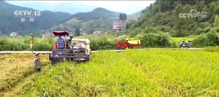 央視網(wǎng)消息:近段時間,重慶酉陽土家族苗族自治縣的26萬畝水稻陸續(xù)進入成熟期,種植戶們駕駛著收割機穿梭在田間,搶收水稻,確保顆粒歸倉。