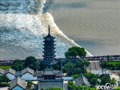 2023年9月2日,浙江嘉興海寧,錢塘江大潮潮頭洶涌。近日,錢塘江迎來秋季大潮汛,壯觀景象吸引游客前往觀賞。