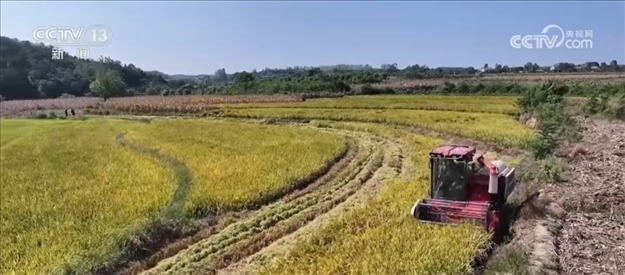 央視網消息:在湖北省當陽市,眼下正是中稻收獲的季節(jié),機械化收割有序推進。