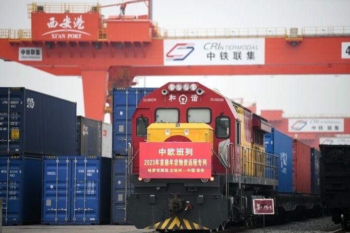 1月13日,滿載著來自哈薩克斯坦1300噸面粉的中歐班列抵達(dá)西安國(guó)際港站。這標(biāo)志著2023年首趟中歐班列年貨物資返程專列順利抵達(dá)西安,為即將到來的春節(jié)拉來了“洋年貨”。