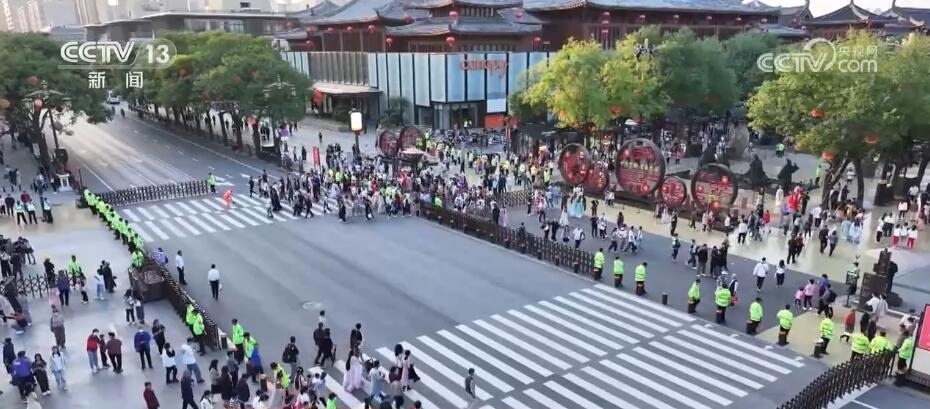 西安大唐不夜城是很多游客到西安必打卡的景點之一。今年中秋國慶假期頭兩天,大唐不夜城的日均客流量達(dá)到40萬人。聚起了人氣之后,怎樣保證數(shù)十萬游客能夠平安順暢出行,成為景區(qū)面臨的第一道難題。