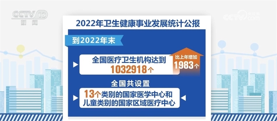 《公報》顯示,我國醫(yī)療衛(wèi)生資源總量繼續(xù)增加。到2022年末,全國醫(yī)療衛(wèi)生機構(gòu)達到1032918個,比上年增加1983個。全國共設(shè)置13個類別的國家醫(yī)學中心和兒童類別的國家區(qū)域醫(yī)療中心。全國醫(yī)療衛(wèi)生機構(gòu)床位975.0萬張,每千人口醫(yī)療衛(wèi)生機構(gòu)床位數(shù)由2021年的6.70張增加到2022年的6.92張。全國衛(wèi)生人員總數(shù)1441.1萬人,比上年增加42.5萬人。每千人口執(zhí)業(yè)(助理)醫(yī)師3.15人,每千人口注冊護士3.71人。